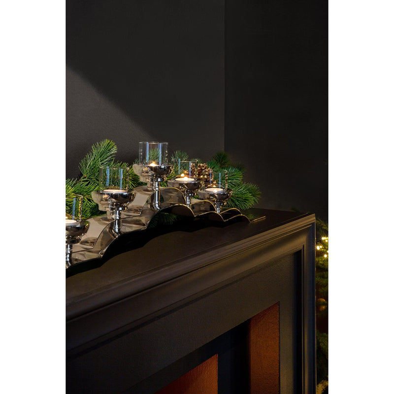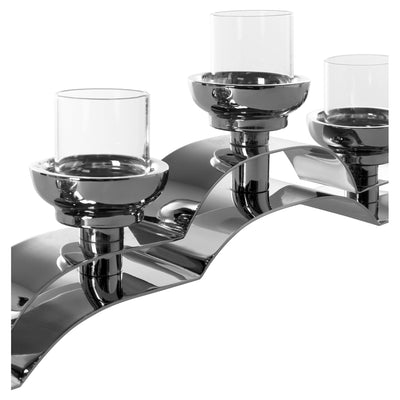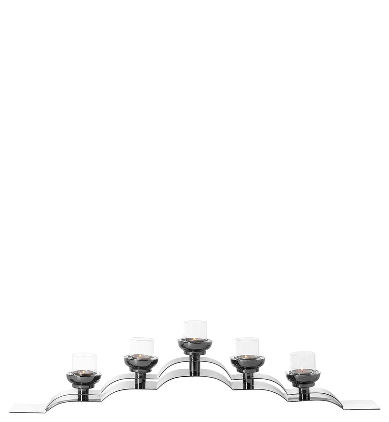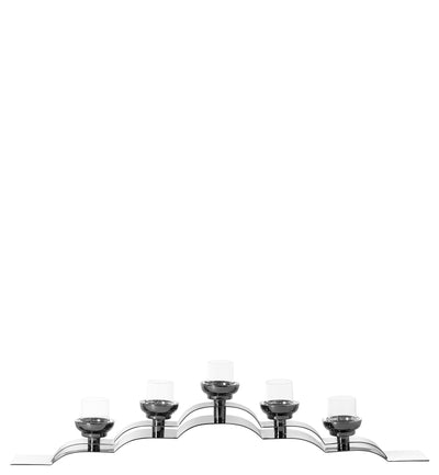 Con el candelabro de cinco llamamientos Nuvola, la mezcla de estilo de clásico y moderno administra con facilidad. El diseño exclusivo, el acero inoxidable pulido brillante y la gran calidad subrayan el carácter del objeto de este accesorio de decoración. La forma alargada es ideal para alféizares y consolas de ventanas y se convierte en un cazador de ojos de cada configuración de tableta solemne. Hay dos versiones diferentes disponibles. Se crean pequeñas irregularidades en forma, superficie u otros detalles durante la artesanía y le dan a cada artículo un encanto individual. Cada copia es única.