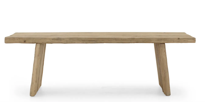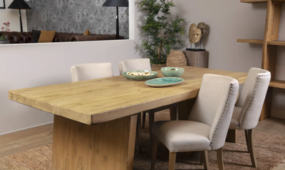 "Descubra la mesa de comedor Flamant Saito de Old Elm, una obra maestra de la artesanía natural. Esta mesa, hecha de madera de olmo robusta, promete con sus imponentes dimensiones de elegancia y estabilidad de 244 x 102 cm de largo.