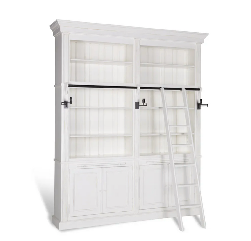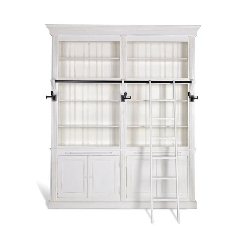 Nuestro mueble biblioteca Balmore, hábilmente elaborado, es una auténtica joya que marca la pauta en cualquier ambiente, ya sea clásico o moderno. Convierte cualquier hogar en un pequeño palacio. Exhibe tus objetos de arte y libros de fotos en los cajones extraíbles y cambia simplemente la posición de las baldas. Los estantes móviles y las lámparas Milano pueden colocarse como desees, y la escalera te permite alcanzar los tesoros que guardas en la parte superior. Esta obra maestra de auténtica artesanía merece un lugar de honor en tu casa.