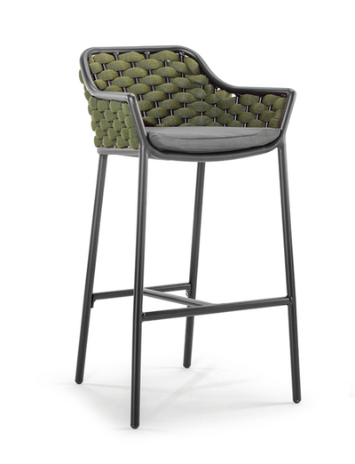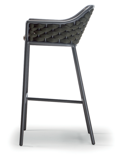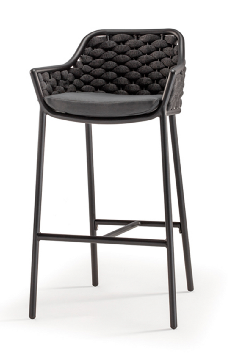 "Descubre lo elegante 'Grattoni Bar Chair Panamá ', una combinación perfecta de funcionalidad y diseño moderno. Con un marco de aluminio robusto, relacionado con textiles de alta calidad y cuerda de goma, este taburete ofrece una adición elegante a cada bar o cocina en antracita, negro o topo ".