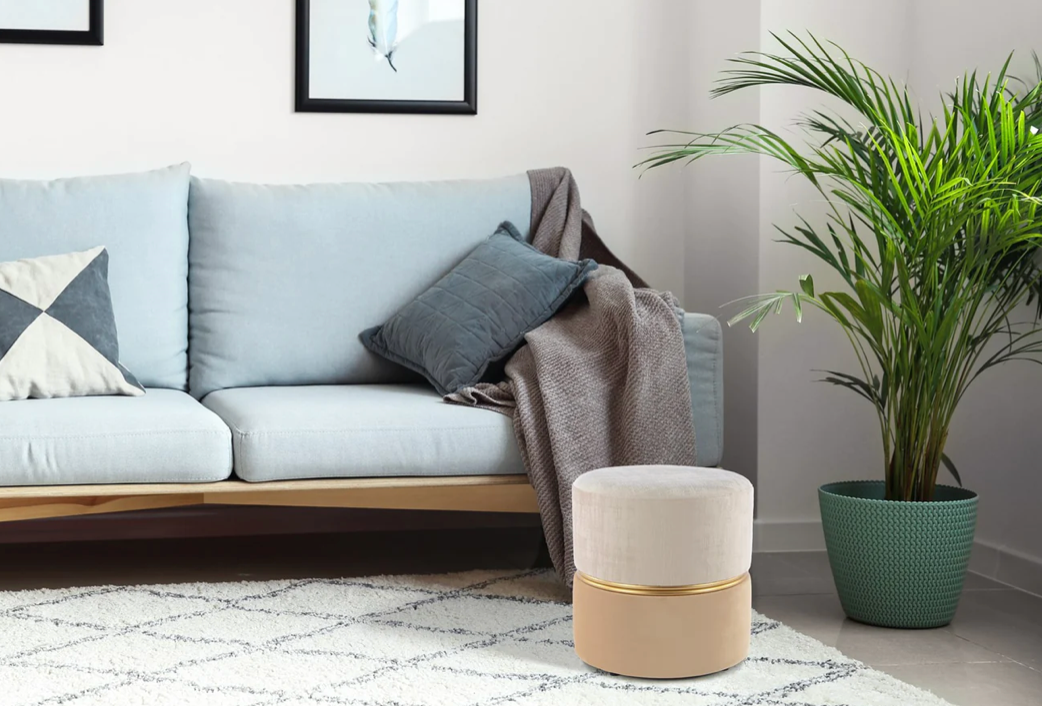Diseño y estilo: Heces de dos cuores en un diseño moderno, superficie de terciopelo, anillo de detalles dorados, versátil