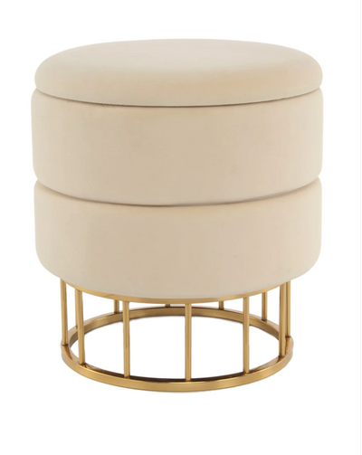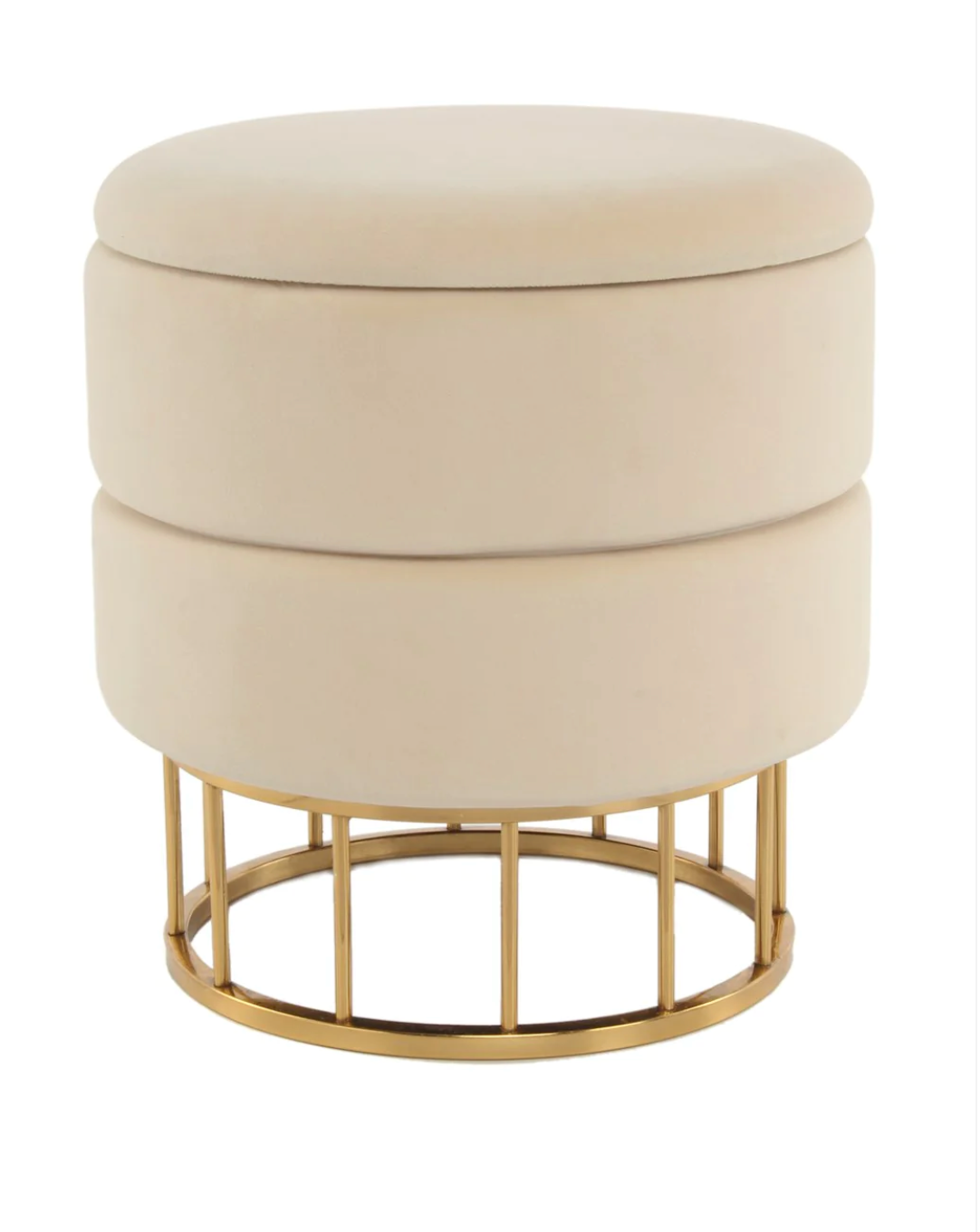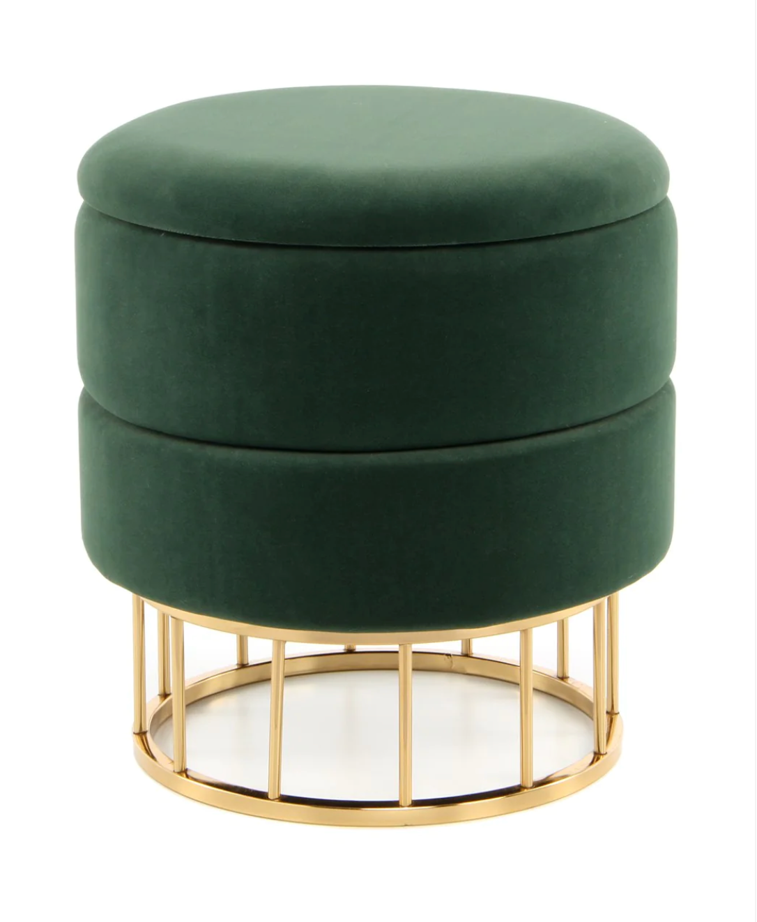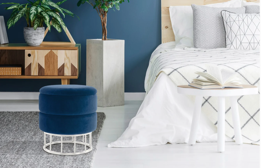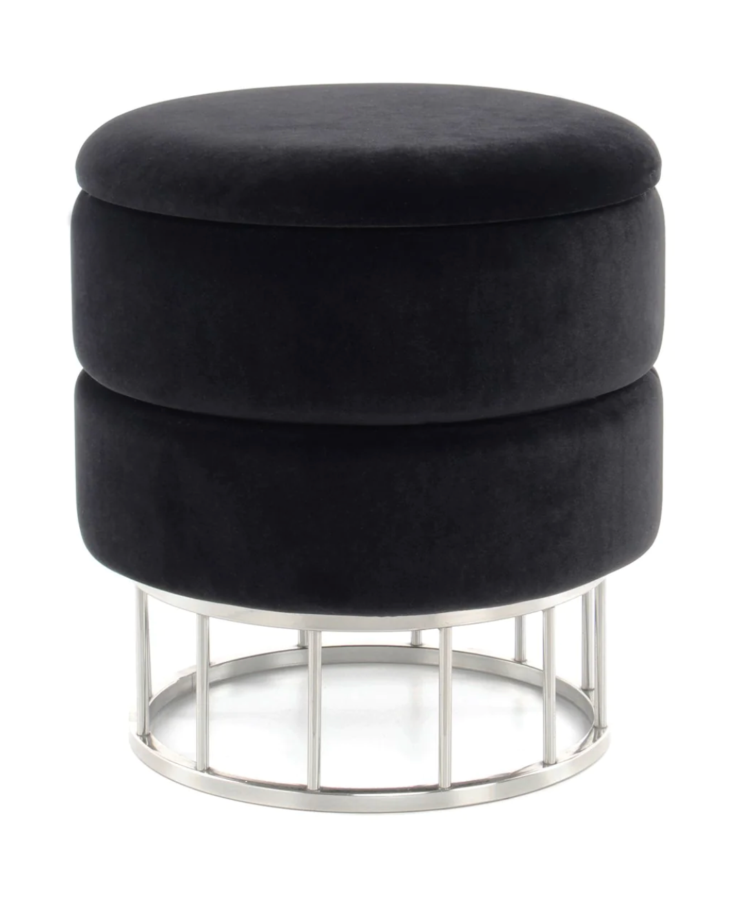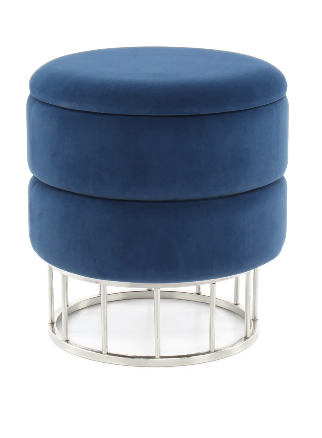 Diseño y estilo: Taburete redondo moderno con espacio de almacenamiento y elegante cubierta de terciopelo en azul oscuro