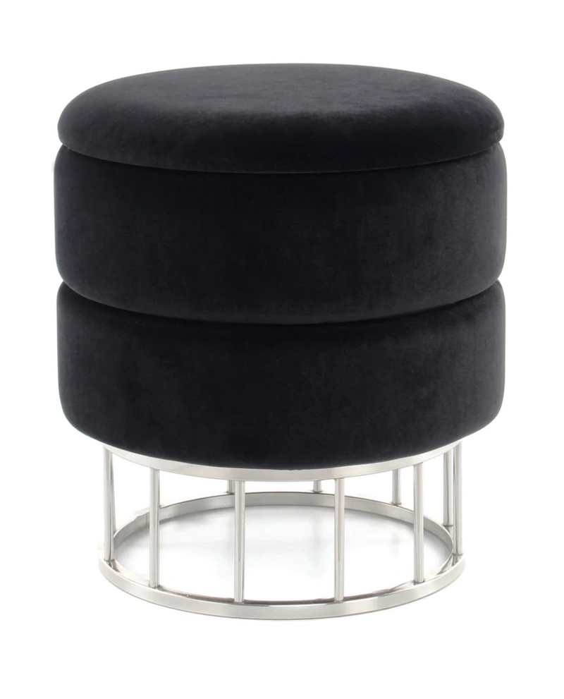 Descubra el taburete multifuncional Lieske: Dark Blauer juntos se encuentran con un marco plateado, combinado con un espacio de almacenamiento práctico. Un imprescindible para los interiores conscientes del estilo que tanto entusiasta y funcionalmente convencen.