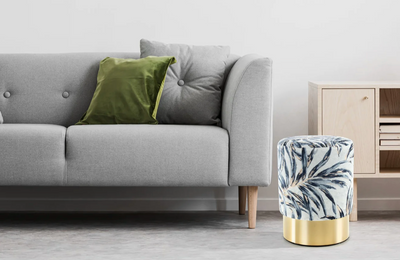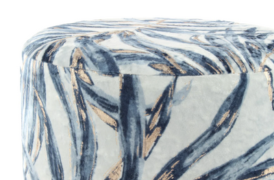 Diseño y estilo: Pouf de asiento redondo con elementos de metal, cubierta de tela diseñada