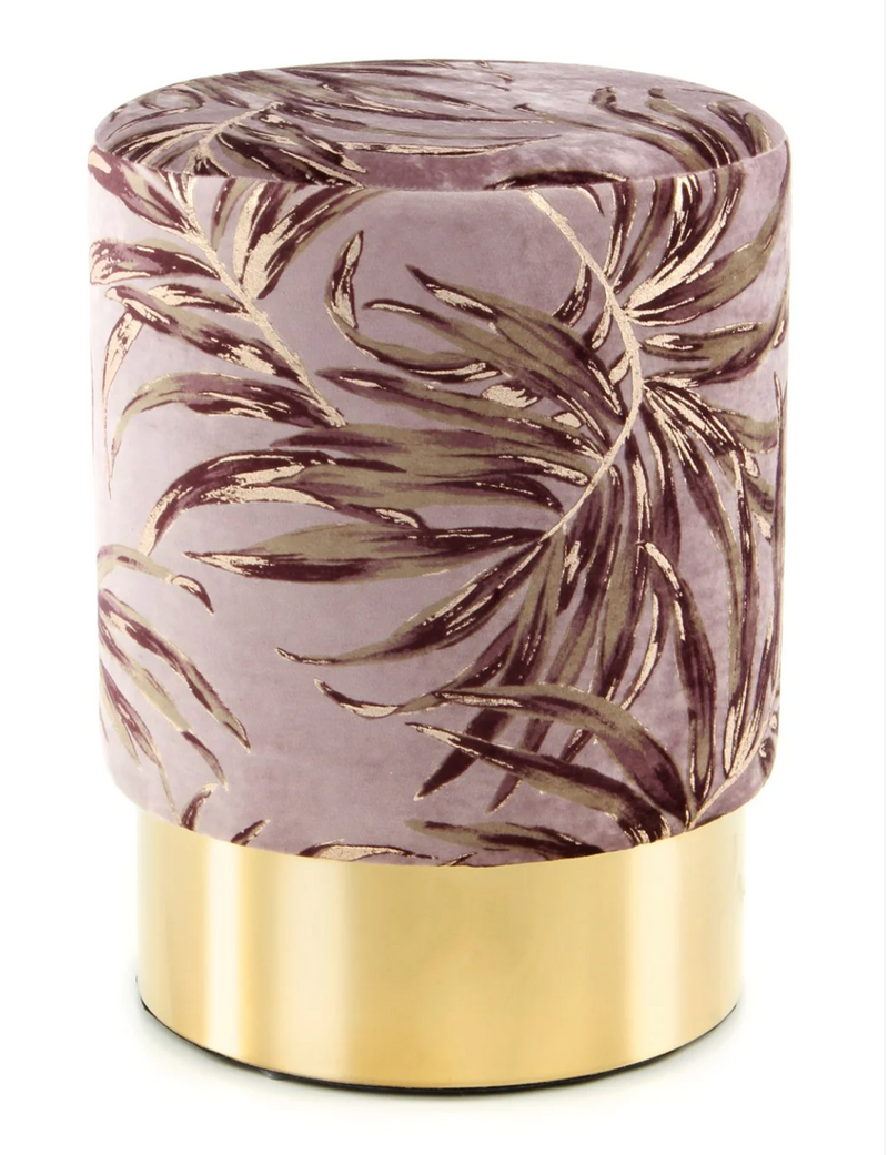 Descubra el taburete de Leif: un imprescindible con una cubierta en una violeta animada y un elegante marco de oro. Perfecto para acentos modernos en cada habitación.