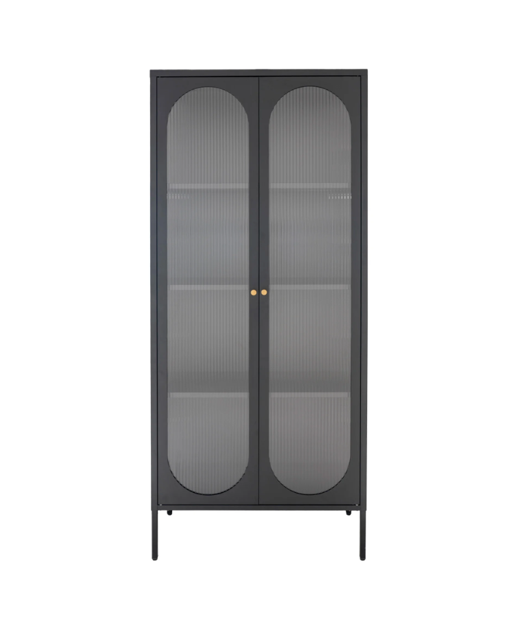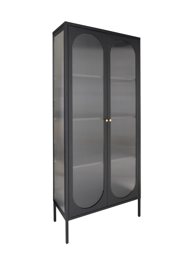 Descubra la colección Matera Vitrine Jax: la manera perfecta de presentar con estilo los artículos y decoraciones de su coleccionista. Con su diseño moderno y las puertas de vidrio corrugado, este escaparate es un cazador de ojos en cada habitación. Hecho de acero y vidrio de alta calidad en negro elegante, no solo ofrece una construcción robusta, sino también un toque de sofisticación.
