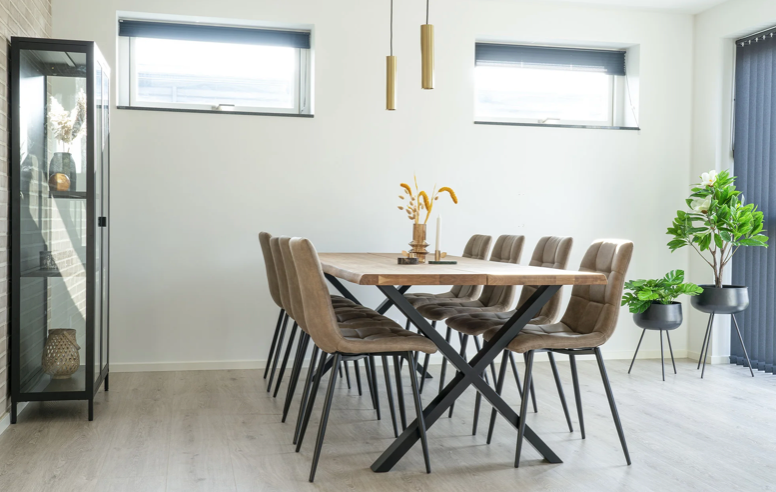 La colección Giacomo de la mesa de comedor de Matera en el tamaño de 95x240x75 cm es la opción ideal para reuniones familiares grandes o noches sociales con amigos. Hecho de roble ahumado de alta calidad con un llamativo borde ondulado, esta mesa le da a su comedor un encanto rústico pero elegante.