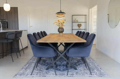 La colección Giacomo de comedor Matera en el tamaño de 100x300x75 cm ofrece espacio espacioso y un diseño elegante para su comedor. Hecho de roble ahumado de alta calidad con un llamativo borde ondulado, esta mesa le da a su habitación un aspecto natural y atractivo. Las robustas patas de acero aseguran la estabilidad y la durabilidad. Esta mesa está preparada para una extensión para adaptarse a sus necesidades y dejar espacio para más invitados.