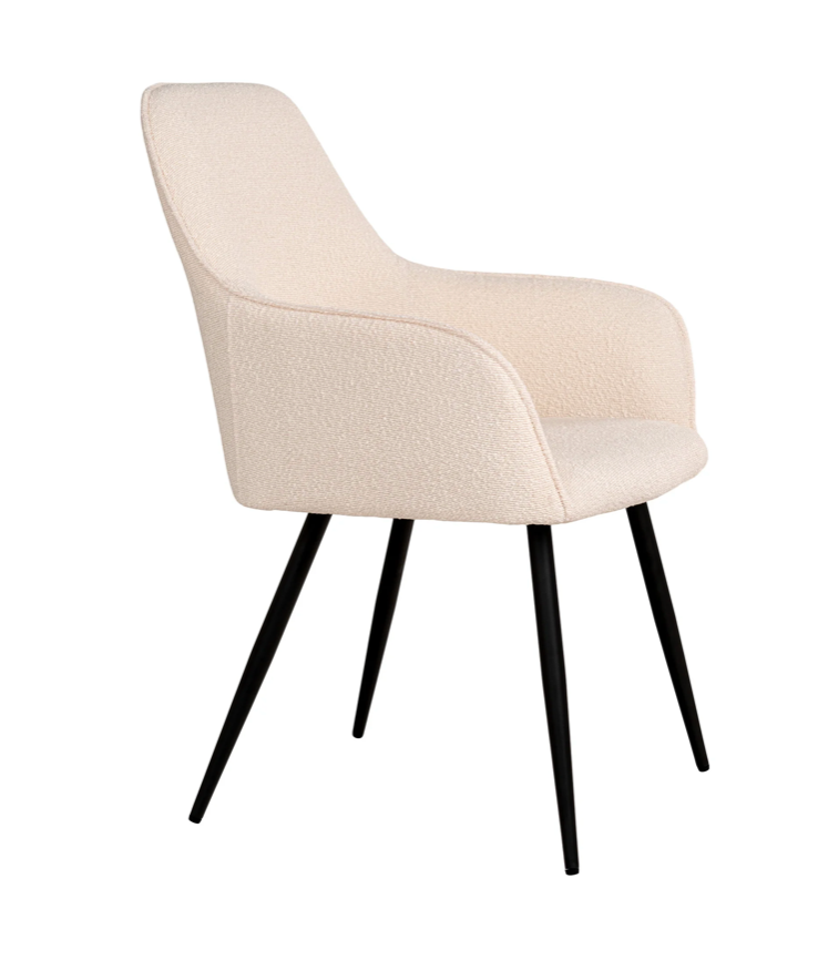 El comedor de Matera Vito 2 es un comedor moderno que convence con su elegante diseño y mano de obra de alta calidad. Hecho de Bouclé en patas blancas y con metal negro, le da a cada habitación un toque de elegancia. Con sus generosas dimensiones y peso ligero, es ideal para comedor y salas de estar.