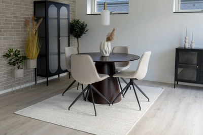 El comedor de Matera's Vega's 2 Set es un elegante comedor con un diseño contemporáneo y una cómoda cubierta de microfibra en beige. Con sus patas de metal negro, le da a cada habitación una nota moderna. Gracias a sus generosas dimensiones y su peso de 7 kg, es ideal para comedor y salas de estar.