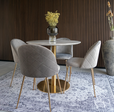 El conjunto de comedor Matera Simone le da a su comedor un toque moderno y elegante. La mesa cuadrada con un tamaño de 90x90x75 cm ofrece suficiente espacio para sus comidas. Las cuatro sillas ofrecen comodidad y estabilidad con una altura de asiento de 46 cm y una carga máxima de 110 kg.