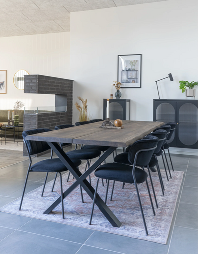 La mesa de comedor de Matera Damiano en el tamaño de 95x240x75 cm es la opción ideal para grandes reuniones familiares o noches sociales con amigos. Hecho de roble ahumado de alta calidad con un llamativo borde ondulado, esta mesa le da a su comedor un encanto rústico pero elegante.