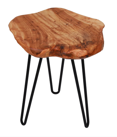 "Descubre el Material Mesa lateral Woody 210 Natural: una simbiosis perfecta de naturaleza y diseño. Con su placa de cedro y el marco de hierro delgado, encaja perfectamente en cada ambiente ".
