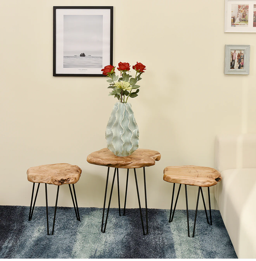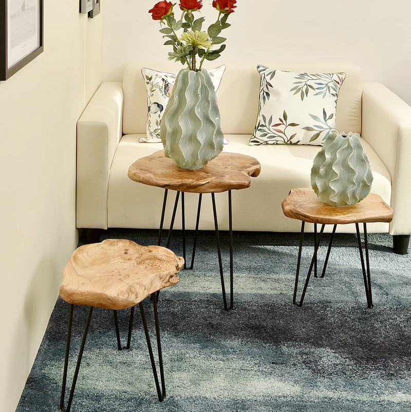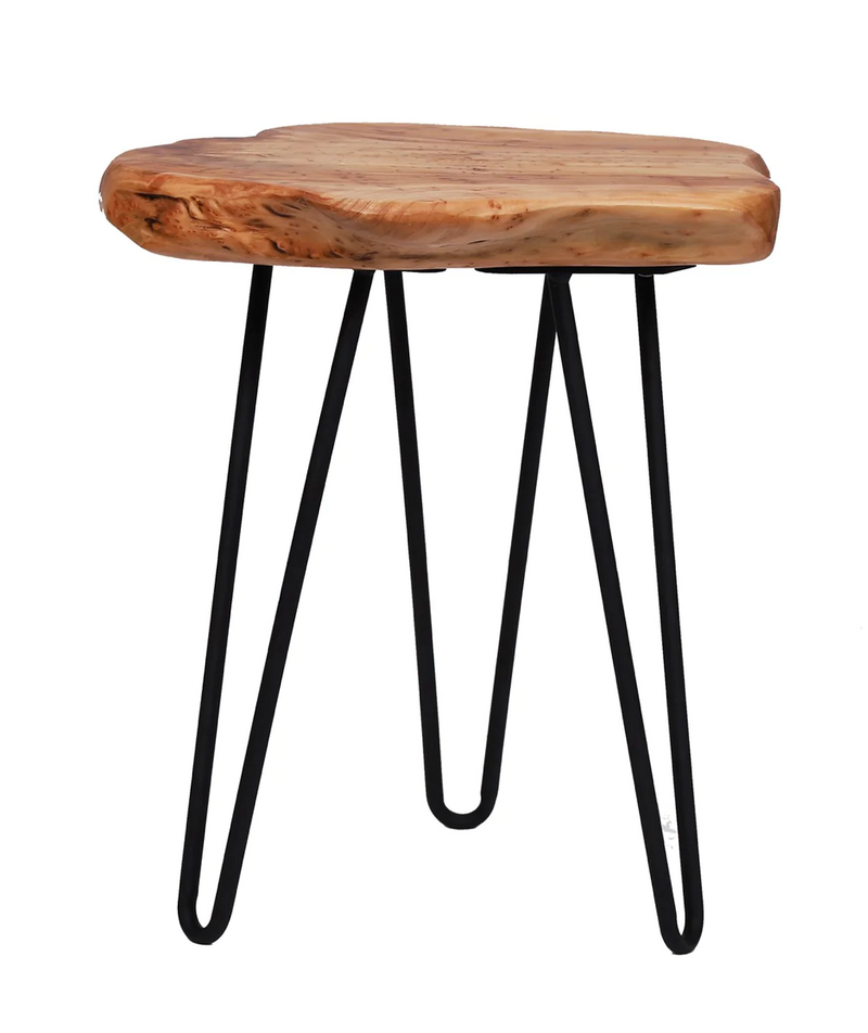 - Diseño y estilo: Mesa lateral natural con encanto rústico y marco moderno de hierro negro, ideal para estilos de muebles versátiles