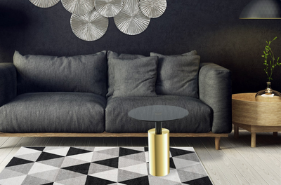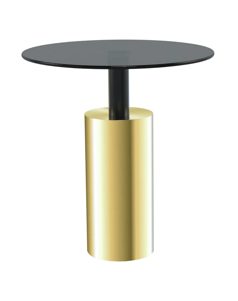 - Diseño y estilo: Mesa auxiliar en estilo glamoroso, forma redonda con un diseño de dos tonos
