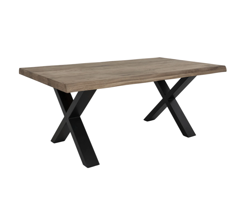 - Material y color: Roble con acabado de aceite de humo, con borde ondulado