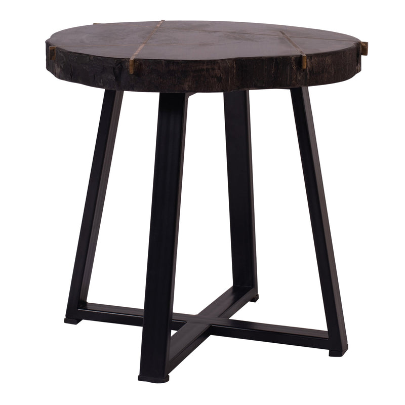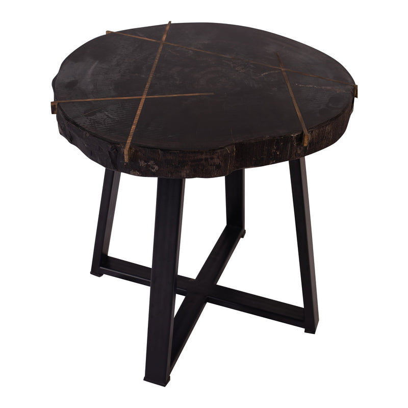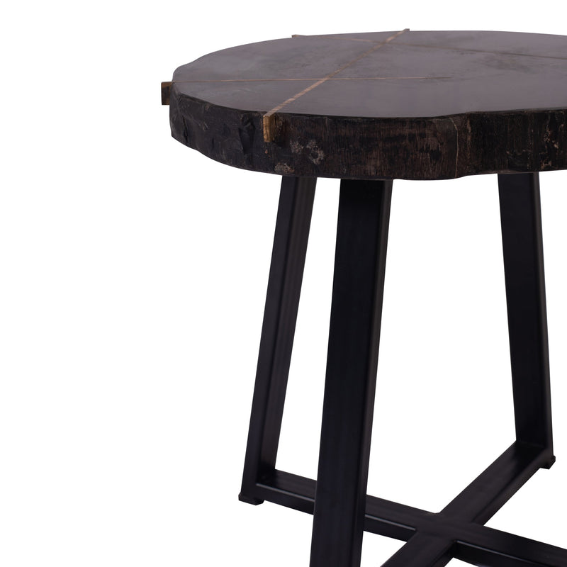 Mesa de café Ptmd Tay hecha de madera petrificada, negro, metal, alto
