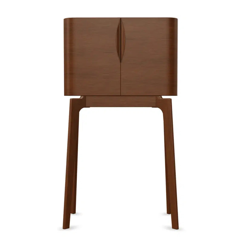 Este atractivo gabinete de bar ofrece elegancia clásica en madera bellamente procesada con nuestras características distintivas de mediados de siglo. Cuando se abre, hay mucho espacio para almacenar sus botellas y vasos. Incluso tiene un espejo oculto en el interior. Ciertamente será el cementer de la habitación.
