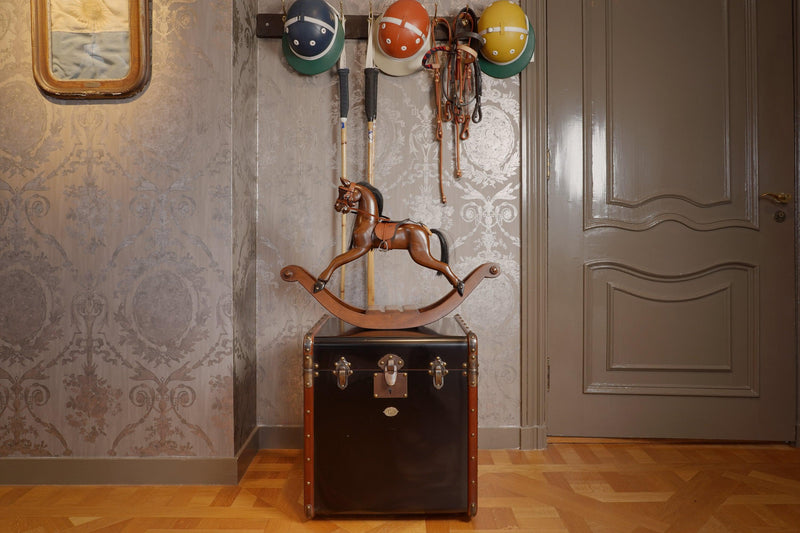 El equipaje victoriano fue hecho para el envío en tren, vapor y transporte de caballos. El caso fue enviado por delante y manejado exclusivamente por correas. Los neumáticos clásicos de arce, reforzados por accesorios de latón y esquinas reforzadas, protegieron el tronco y su contenido de daños. La forma alta y cuadrada de nuestro tronco de "mesa lateral" se diseñó de tal manera que se ajusta a las cabañas ajustadas sin ningún problema al viajar. Sin embargo, ¡fue lo suficientemente grande como para absorber un sombrero de tubo de horno negro alto! Disfrute del sabor de una era de lujo pasada. Combine el encanto del fin-de-siècle con la aplicabilidad práctica del almacenamiento eficiente.