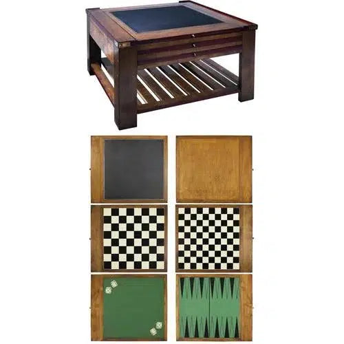 Ríete, juega y bebe en esta "mesa de juego" artística de modelos auténticos. Ir a cheque o bancarrota.Si los cubos cargados y el backgammon son más a su gusto, cambie el tablero. O desenter los dominios del renacimiento empaquetado y sacar el tablero verde, el dominó, el póker, el monopolio. Si no está de humor para los juegos, voltee el tablero y elija un plato de madera de cereza o cuero clásico ... un mundo de entretenimiento en sus dedos. Parque libros y cajas regulares en el nivel inferior. Disponible en un rojo rubí profundo, marfil sutil o lujoso negro.