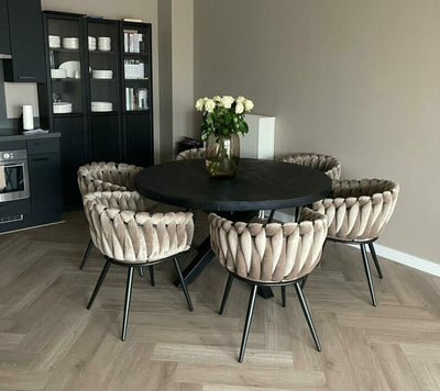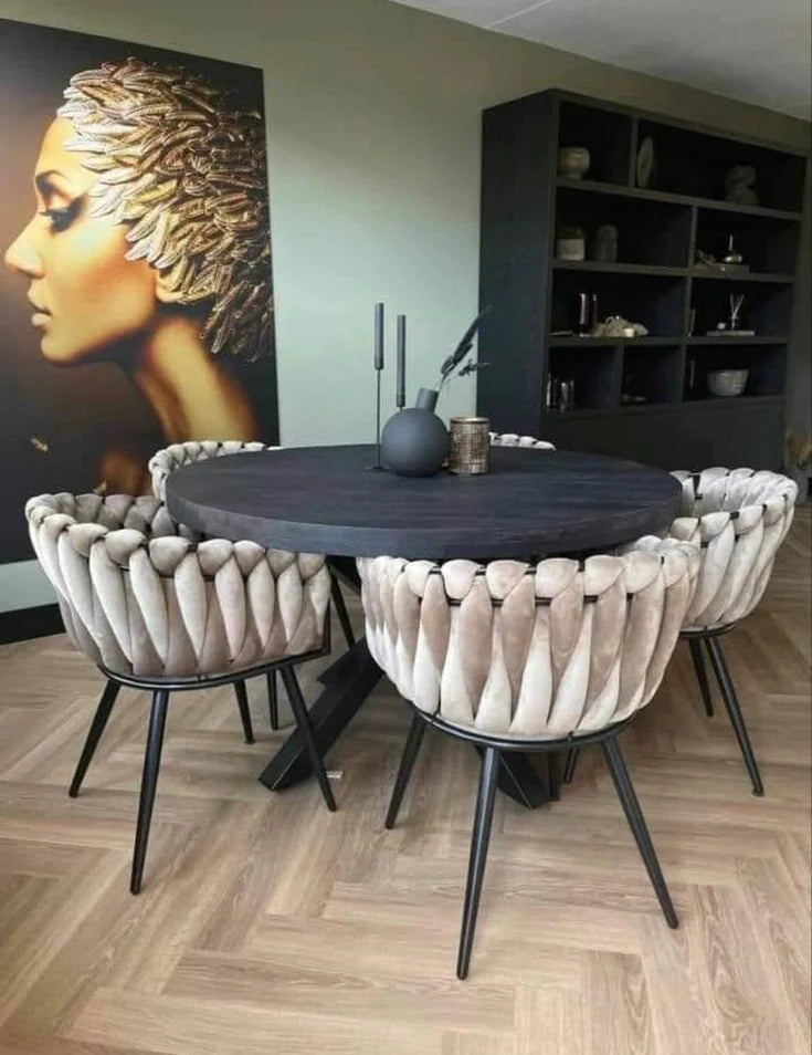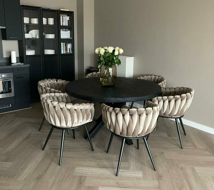 La "silla de olas" por Pole to Pole es un mueble exquisito que se caracteriza por su impresionante patrón trenzado en el respaldo. Esta silla no solo es un asiento cómodo, sino también un lujoso cazador de ojos para cada interior. Su diseño único está garantizado para despertar el interés de sus invitados. El cojín de espuma de 5 cm de espesor y el respaldo de diseño ergonómico aseguran una comodidad óptima de asientos, ideal para largas tardes en la mesa del comedor. La silla de olas está disponible en siete colores atractivos y, por lo tanto, se adapta a cada estilo de mobiliario. La silla combina una madera contrachapada y un marco de metal con una cubierta de tela de alta calidad y patas de aluminio con recubrimiento de polvo negro estable.