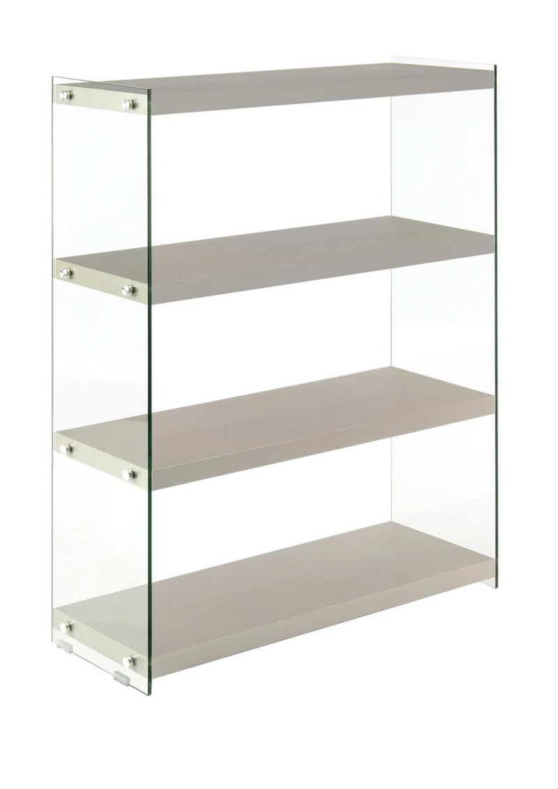 La elegancia cumple con la funcionalidad con el estante Malkolm Plata. La combinación de MDF de alto brillo y pisos de vidrio transparente crea un carisma moderno y al mismo tiempo ofrece mucho espacio de almacenamiento y área de presentación para su hogar.