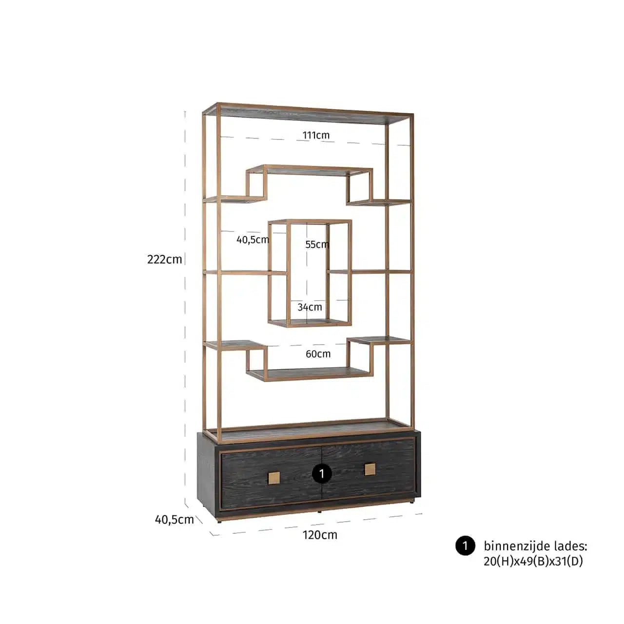 Richmond Interiors Regal Hängeschrank Schrank Ironville 2-türig (Gold)-Regal-Stil-Ambiente-8720621605560