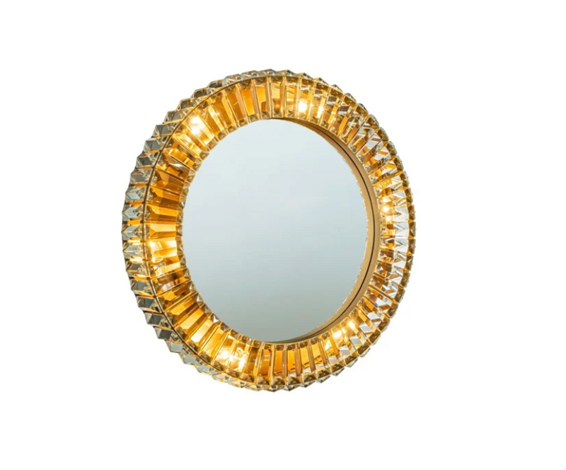 - Diseño y estilo: Marco redondo y decorativo con acentos cristalinos, ofrece luz libre