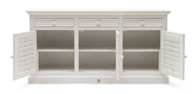 Die handgefertigte Anrichte Sideboard aus der Familie "New Orleans" von Riviera Maison Convencido con su diseño atemporal hecho de madera de acacia de alta calidad. Mit einer eleganten, weißen Kalkfarbe lackiert, bietet es nicht nur eine stilvolle Optik, sondern auch praktische Funktionalität. Tres cajones y tres puertas con estantes sólidos hacen que este mueble sea ideal para almacenar y organización. Gracias a su diseño robusto y su mano de obra de alta calidad, encaja perfectamente en cada espacio vital.