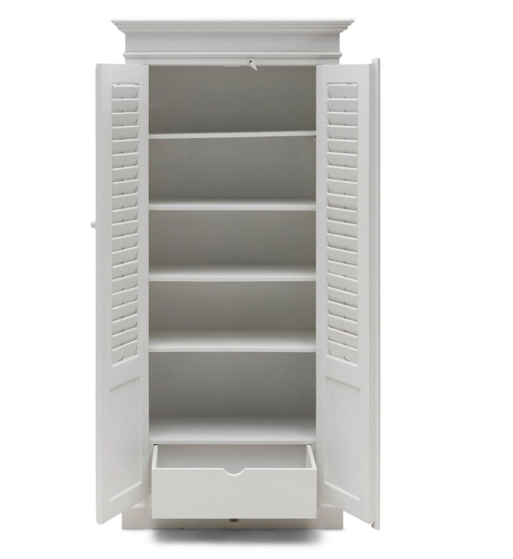 Nueva Orleans es la ciudad más grande del estado estadounidense de Louisiana. La ciudad está ubicada a orillas del Mississippi. Estas puertas de lamel frescas y blancas hechas de madera de acacia Riviera Maison Es particularmente elegante con sus listones móviles en la parte delantera y lateral. Dentro del armario encontrará cinco estantes espaciosos y un cajón grande.