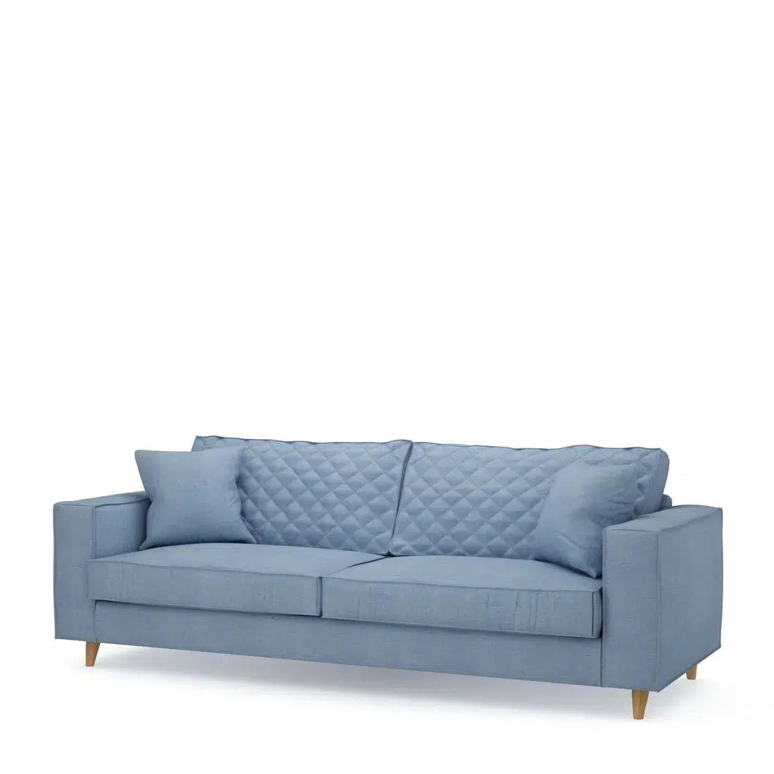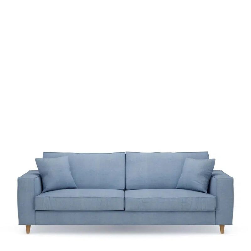 Este elegante sofá con una cubierta de algodón en azul de hielo fino actúa como un impresionante cazador de ojos en su interior. El sofá es un sofá de 3.5 asientos y se entrega con almohadas decorativas adecuadas. El sofá no solo impresiona con Noble Carisma, sino que también ofrece una comodidad de asientos óptima. Les gustaría pasar todo el día después.