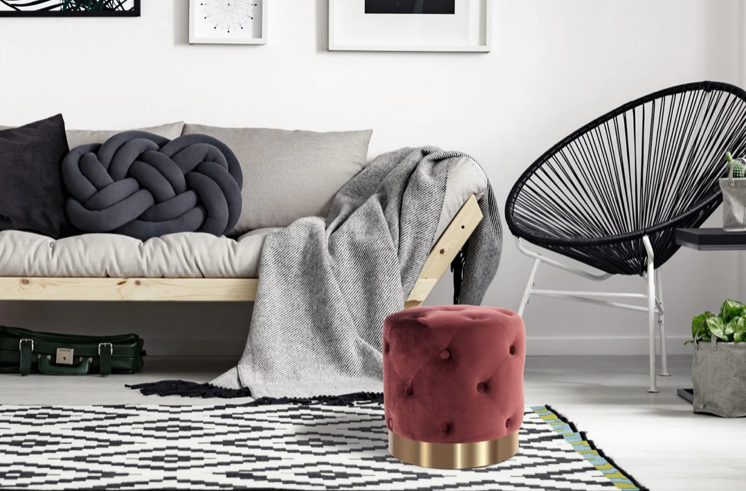 Diseño y estilo: Elegante taburete de asiento de glamour con marco Chesterfield y botones decorativos