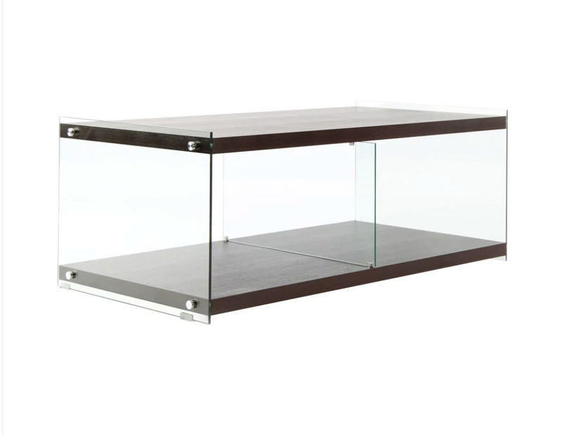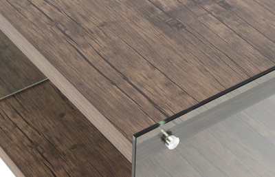 - Material y color: Material: MDF (alto brillo), vidrio endurecido; Color: marrón claro
