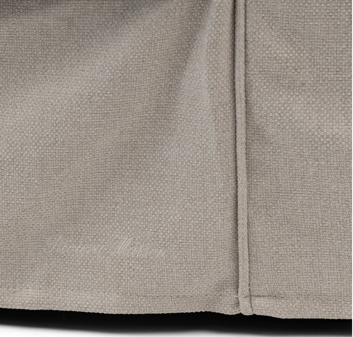 Riviera Maisonin suuren 2,5-paikkaisen mannerosan kaksiosainen selkänoja on kahdella erillisellä tyynyllä lisää mukavuutta ja tukea varten. Istuimella on erityistä yksityiskohtia: Vaikuttaa siltä, että kaksi tyynyä sijaitsevat toistensa päällä, mutta itse asiassa se on yksi istuintyyny, jolla on iso taite. Joten he istuvat erittäin pehmeä ja mukava!