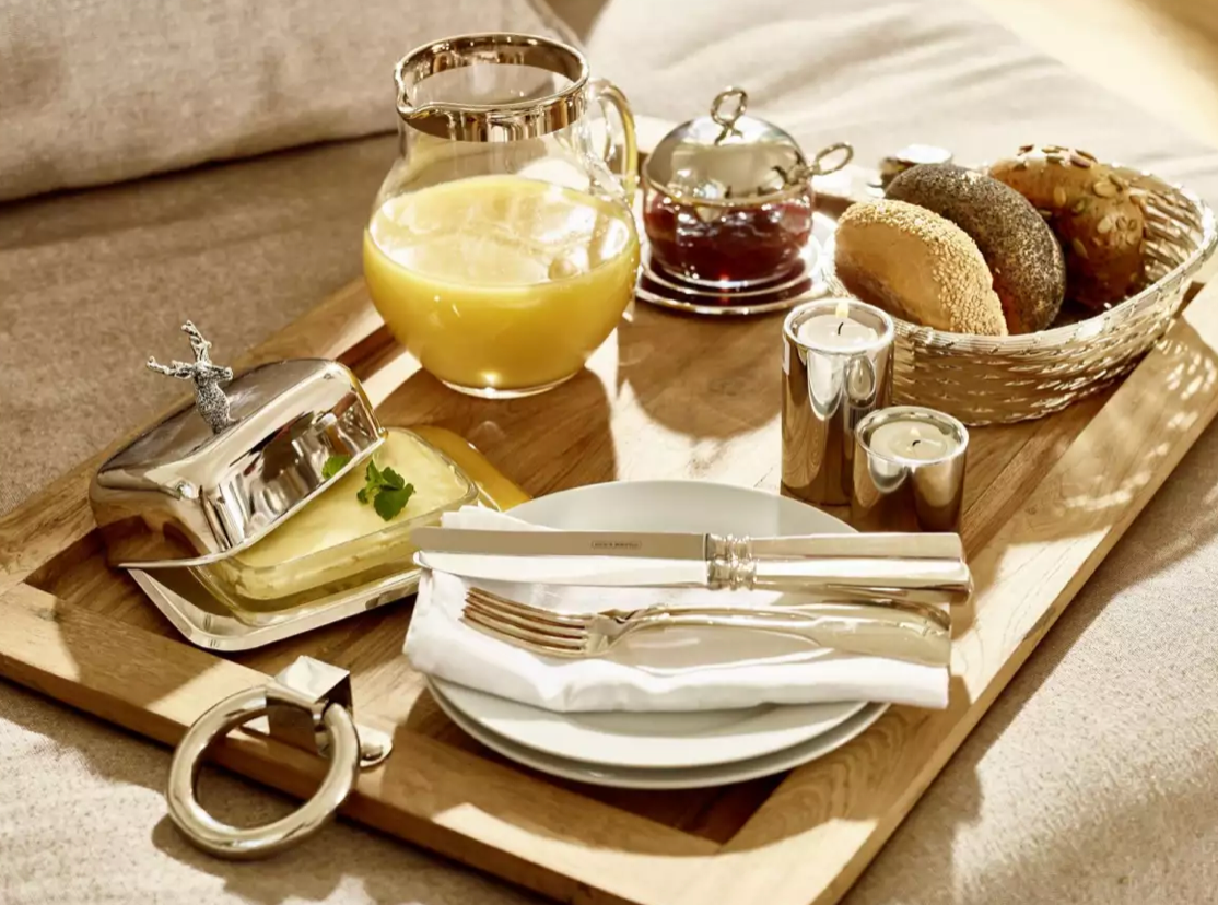 Edzard Butterglocke Jago (130 g Butter), edel versilbert, mit Glasschale & Buttermesser-Stil-Ambiente-3885