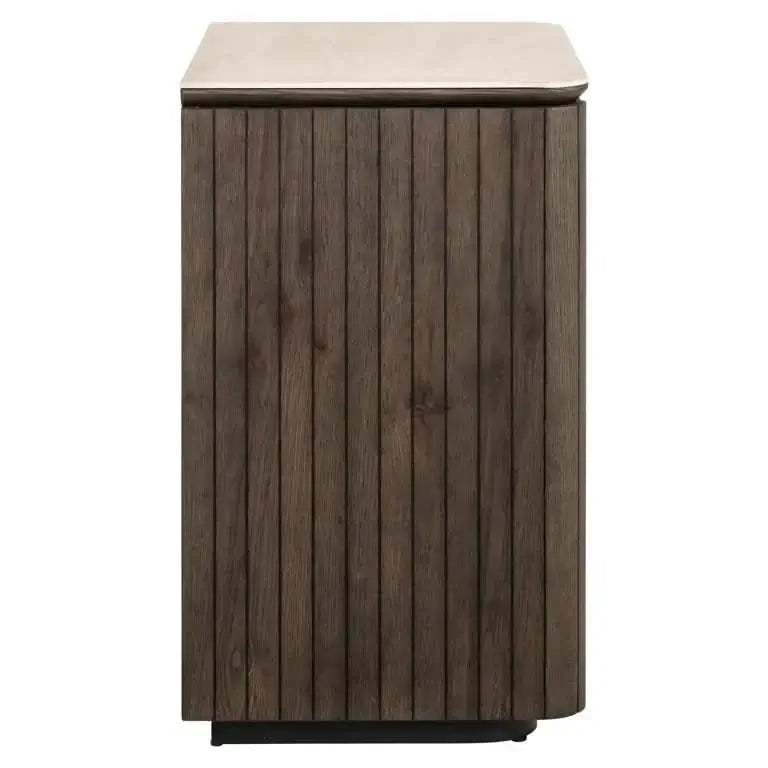 Se Richmond Interiors Sängynpöytä Ritz 3 laatikkoa (ruskea) Yhdistää modernit viivat luonnollisiin materiaaleihin tyylikkäästi, toimivaksi huonekalukappaleeksi. Laadukas ammattitaito travertiinikeramiikan, tammiviilun ja kierrätetyn puun kanssa tuo makuuhuoneeseesi lämpöä ja tyyliä. Kolme tilavaa laatikkoa, joissa on pehmeä-läheinen toiminto, tarjoavat käytännön säilytystilaa ja tekevät sängyn vieressä olevasta pöydästä jalo- ja jokapäiväisen seuralaisen sängyn vieressä.