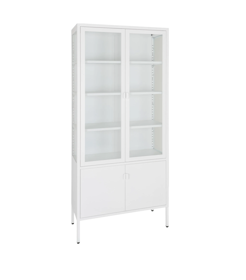 Matera Vitriini Azura -kokoelma on täydellinen ratkaisu tyylikkäästi näyttämiseen ja suojaamiseen arvokkaita esineitäsi. Neljä valkoista ovea ja vankka teräskehys, tämä esittely antaa huoneesi ripauksen eleganssia. Valkoiset metallijalat eivät vain tarjoa vakautta, vaan myös modernia suunnittelua.