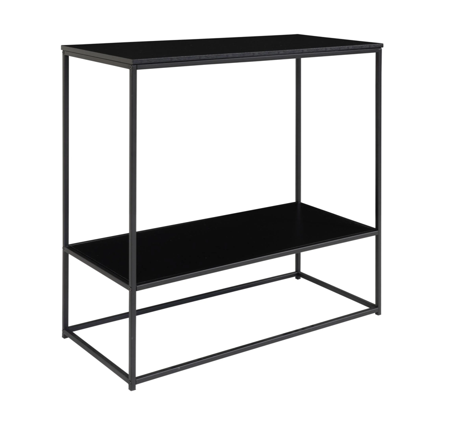 Löydä Matera Console Amora -kokoelma - täydellinen lisäys jokaiseen huoneeseen. Ohut suunnittelullaan, kahdella hyllyllä ja black metal -kehyksellä tämä konsolipöytä ei vain tarjoa tyyliä, vaan myös toiminnallisuutta. Valmistettu korkealaatuisesta teräksestä, lastulevystä ja melamiinipäällystetystä kalvosta mustana, se sopii saumattomasti moderneihin tiloihin.