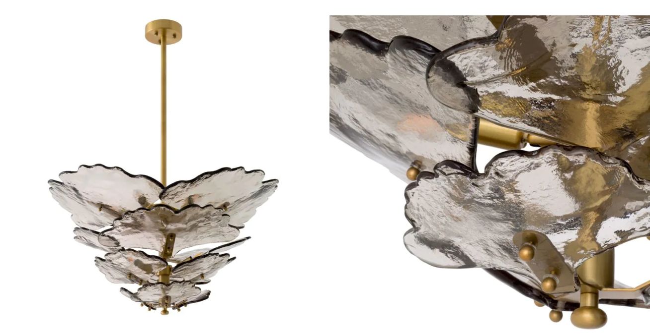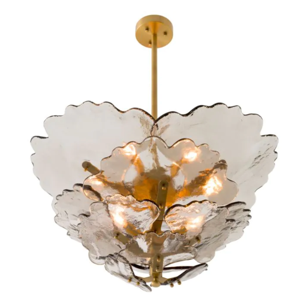 Nosta olohuoneesi hienolla Eichholtz Ripustava lamppu Florina, jossa käsityötaito kohtaa ylellisen valaistuksen. Jokainen tämän kattokruunun taso on suunniteltu käsintehtyllä savulasilla, joka muistuttaa terälehtiä, ja muinaisella messinkillä ajattomalle eleganssille. 83 cm: n ja H. 54 cm: n mitat, tämä kattokruunu sopii täydellisesti tilaviin huoneisiin ja antaa asuintilallesi yksinoikeuden.