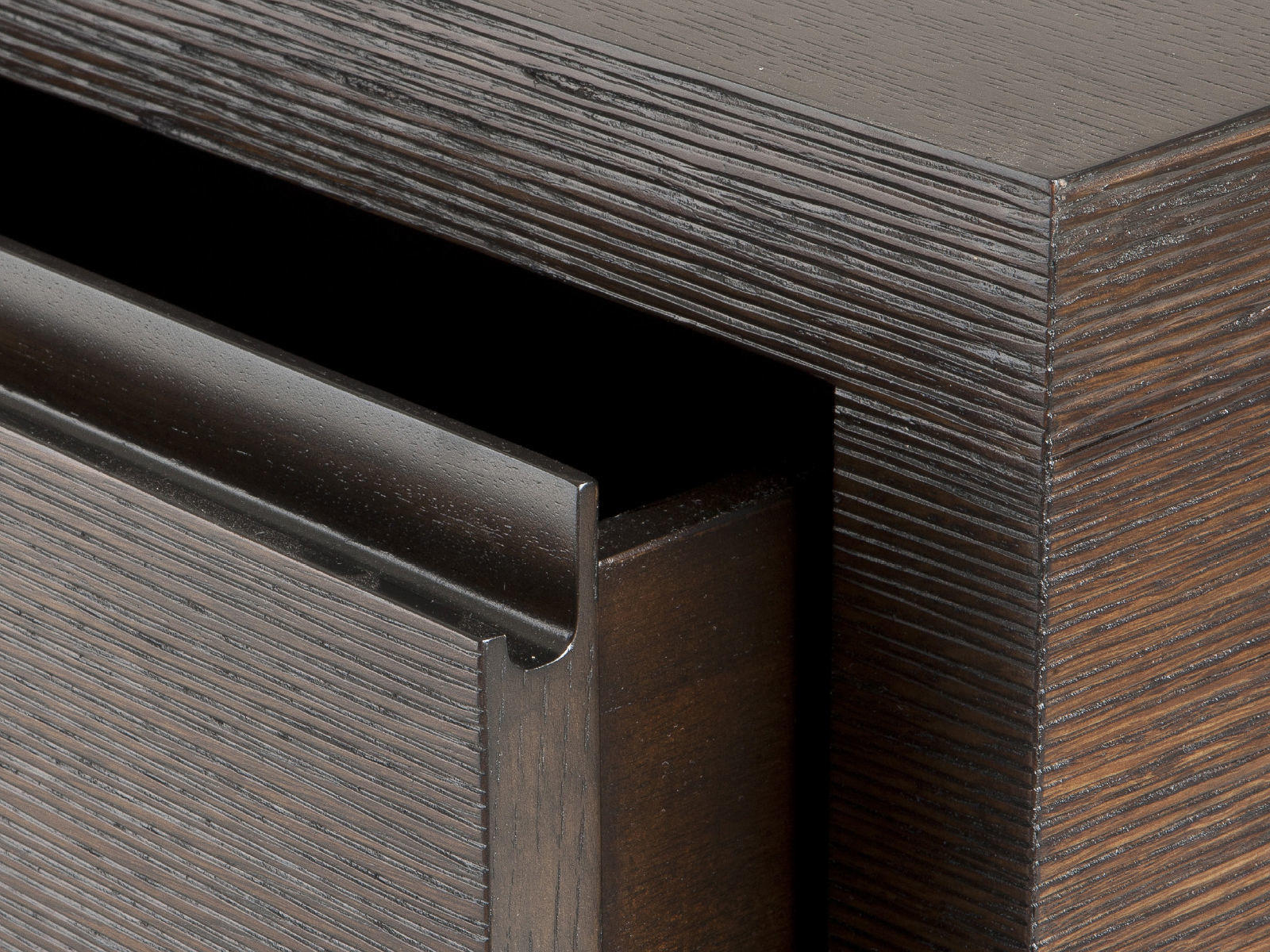 Bois massif avec finition noire, portes en verre miroir antique