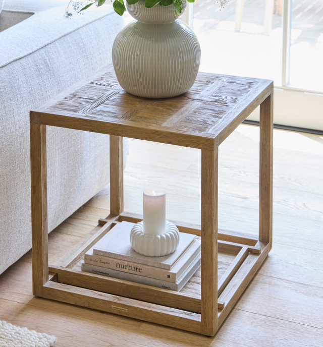 IL Riviera Maison L'isola di Fraser fatta di legno di quercia riciclato colpisce con una qualità sostenibile e fatta a mano. Con le dimensioni 55 x 55 x 56 cm, è ideale per l'interno e imposta accenti rustici. Perfetto per soluzioni di arredamento consapevole.