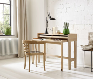 Een klassieker in de serie is dat Lambert Modesto -tafel en secretaris gemaakt van massief eiken, geolied. Dit meubel boeien met zijn robuuste constructie en tijdloze esthetiek. Het uitbreidbare werkoppervlak op rollen meet 120 x 58 cm, wat u voldoende ruimte biedt voor uw dagelijkse taken. Vind deze elegante secretaris nu Stil-Ambiente.DE.