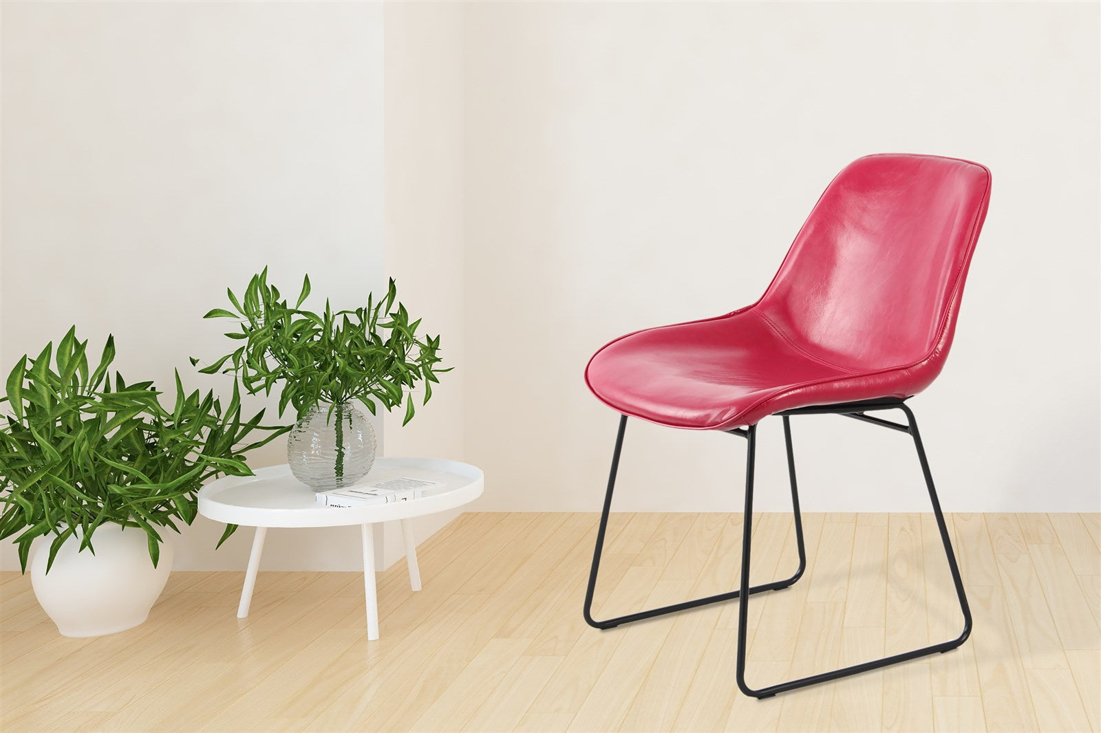 Ervaar comfort in kleur met de eetkamer Henja. Duurzame synthetisch leer en elegante zwarte metalen benen creëren een eigentijdse look voor uw huis.