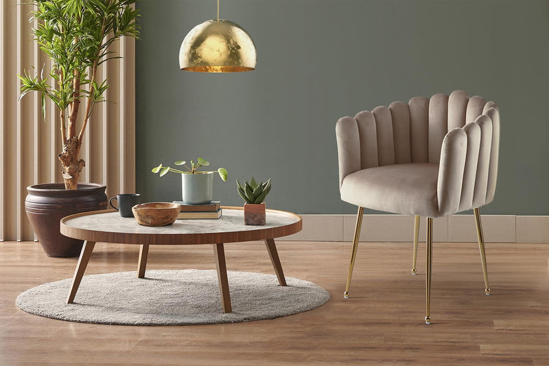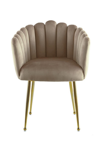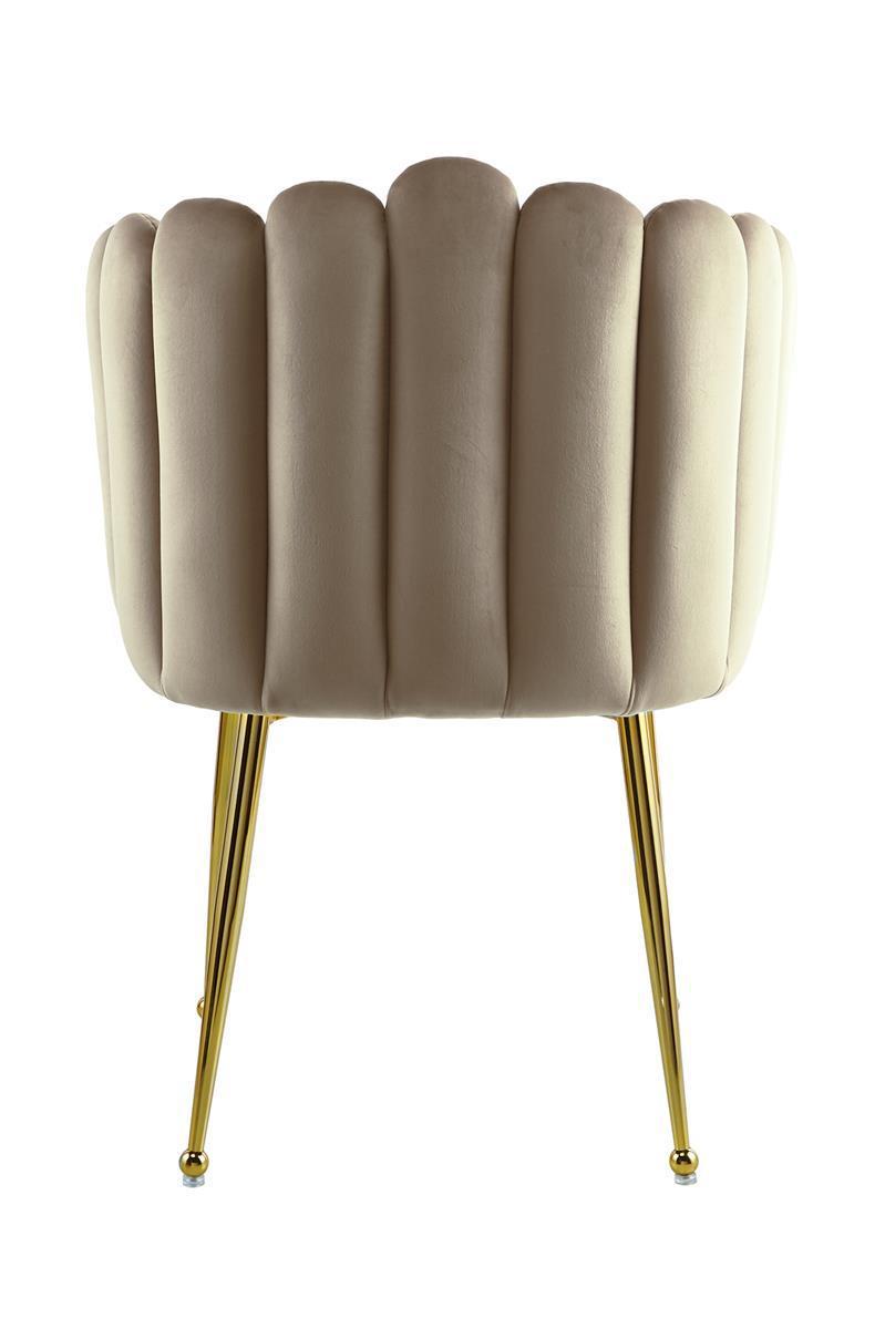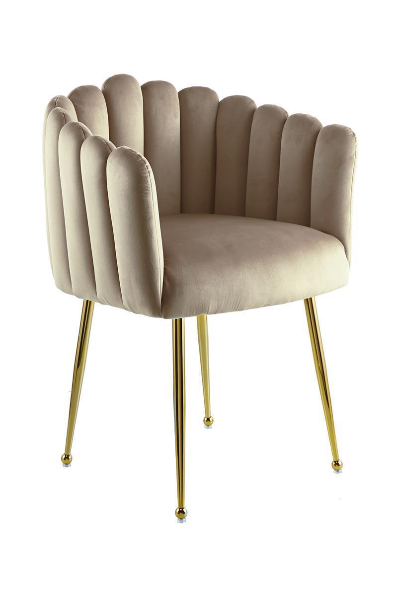Ontdek elegantie met de Kajsa -eetkamer in Beige. De verfijnde rugleuning en het glanzende gouden frame bieden koninklijk zitcomfort en een prachtig ontwerp voor stijlvolle woonsfeer.