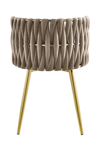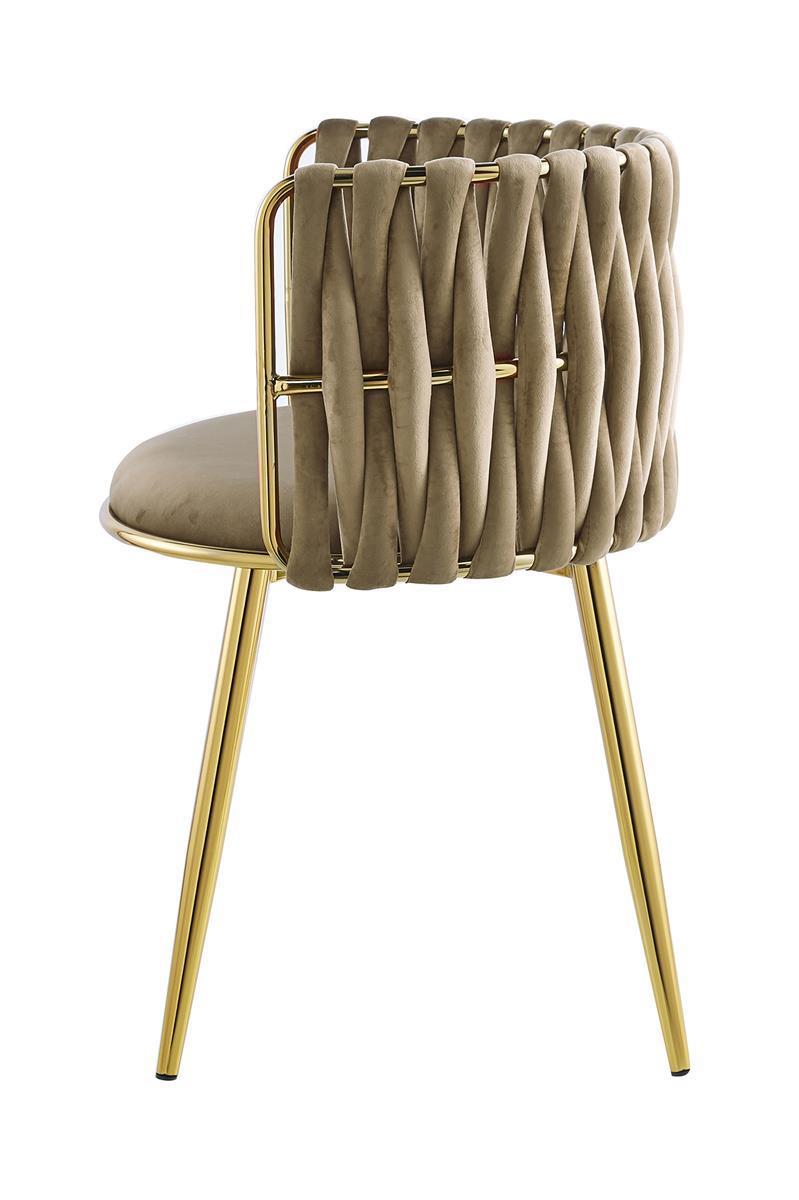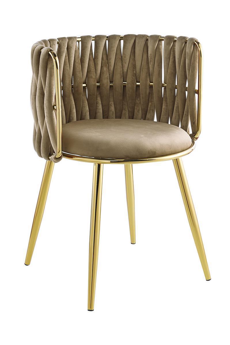 Ervaar een fusie van comfort en nobele esthetiek met de Eszimmerstuhl Caira. Het beige polyester dekt zich perfect harmoniseert met het glanzende gouden frame, ideaal voor veeleisende faciliteiten.