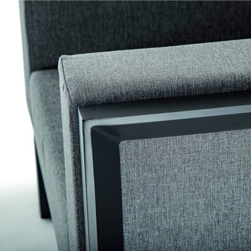 - Bekleding: zonwerende stof, gestoffeerde kussens met sneldrogend schuim