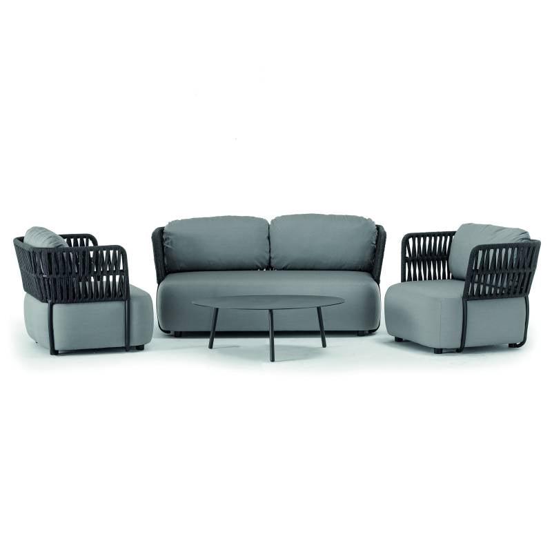 Grattoni Soft Garten Lounge Set - Aluminium mit Seilgeflecht & Textilene - 4-teilig-Stil-Ambiente-Grattoni Soft BLACK/DARK GREY