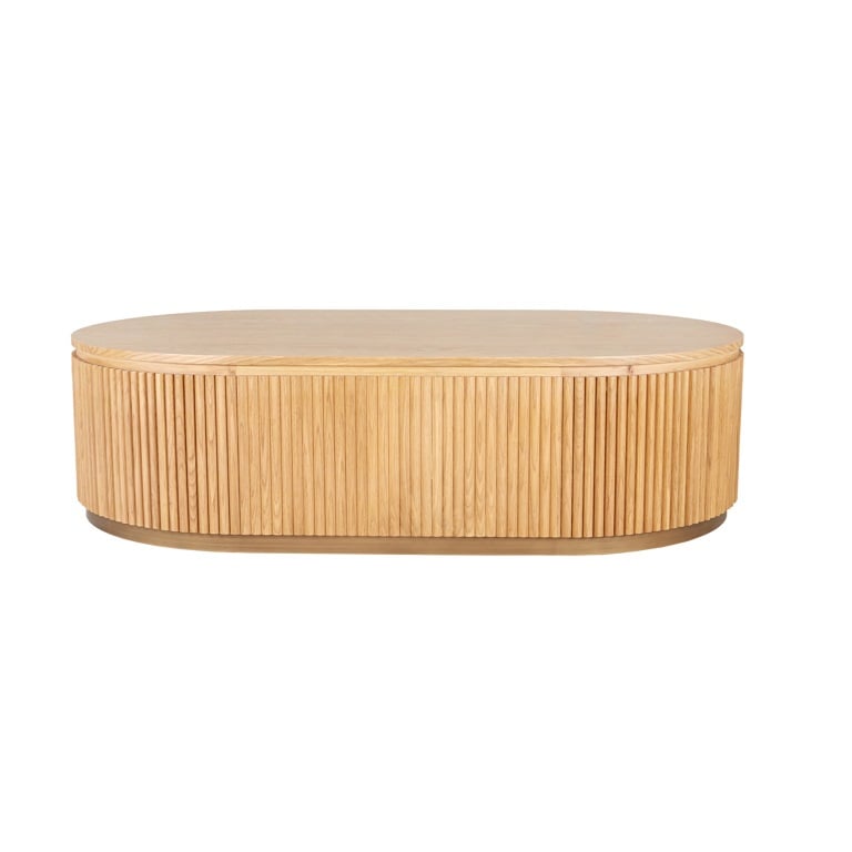 De Richmond Interiors Table de Salon Belfortcapsule in natuurlijk eiken maakt indruk op zijn moderne ontwerp in capsulevorm. Van high -quality eiken fineer met een breedte van 140 cm, het biedt stijlvolle elegantie en bruikbaarheid. EAN: 8721009402092.