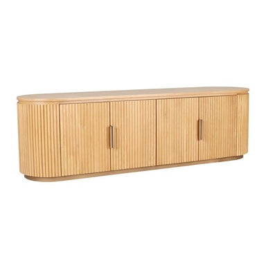 Ervaar stijlvolle elegantie daarmee Richmond Interiors Tv-meubels dressoir Belfort, 4-deurs in natuurlijke eiken. De latfront en de warme eiken look geven elke kamer een moderne toets. Afmetingen: 185x45x55 cm, robuust en stijlvol. EAN: 8721009402085.