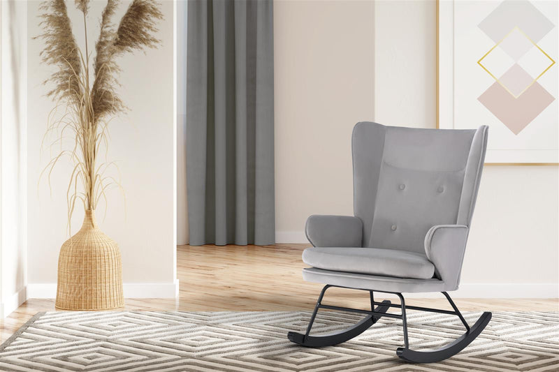Ontdek de schommelstoel Melorie 125 door Kayoom - Een symbiose van functionaliteit en stijlvol grijs fluweel. Het robuuste frame gemaakt van ijzer en de zachte vulling nodigen je uit om uren in je huis te ontspannen.